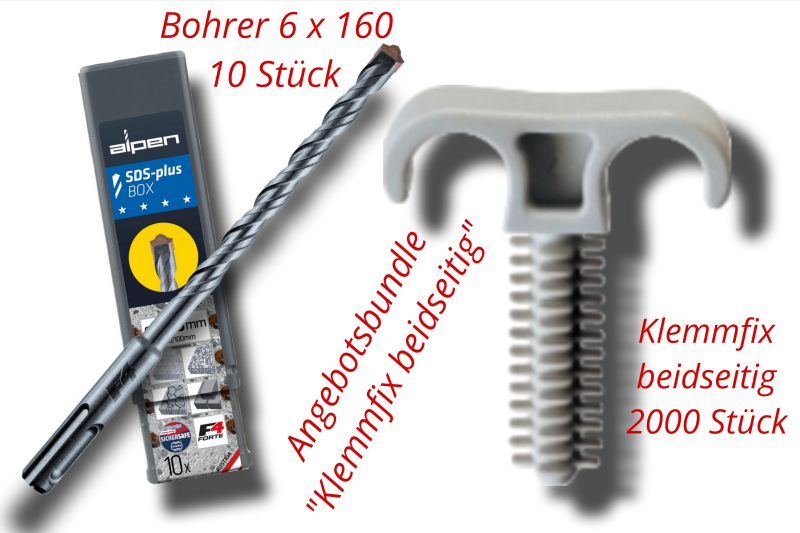 2000 Stück Klemmfix beidseitig + 10 Stück Bohrer SDS-Plus 6 x 160